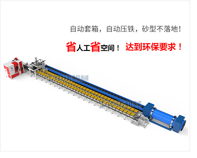 全自動鑄造造型線中鑄全自動造型機具有四高三低的特點: 配置高、效率高、成活率高、使用壽命高、低故障、 低能耗、低維護成本。